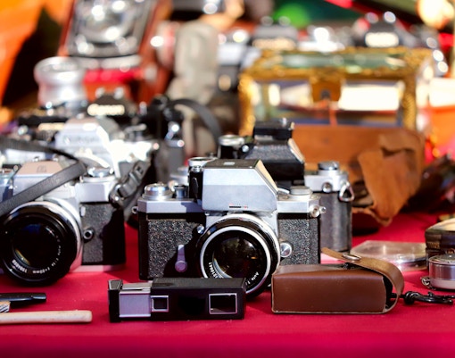 Suchen Sie nach: Azulejo-Fliesen, Retro-Postkarten, alte Kameras.