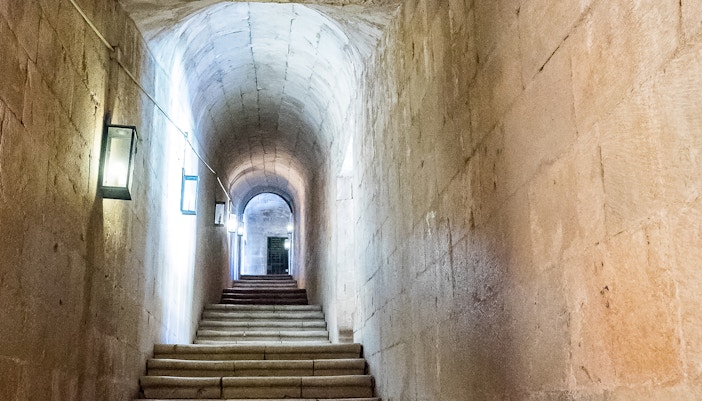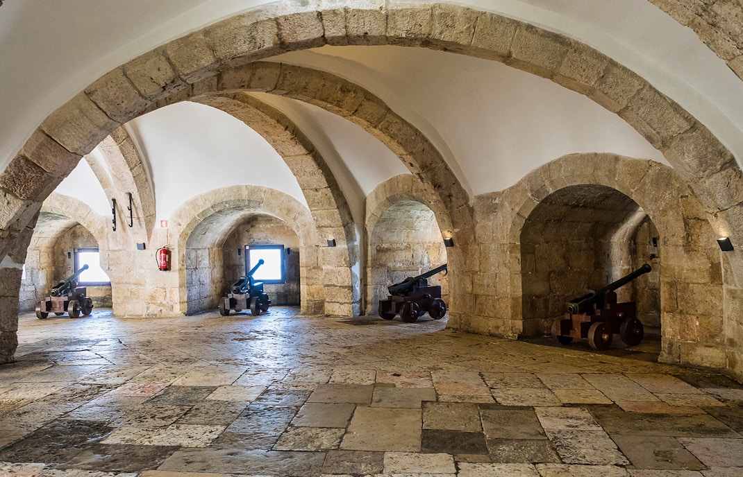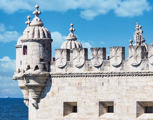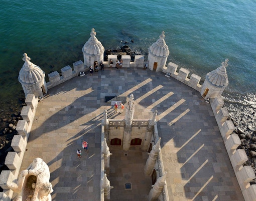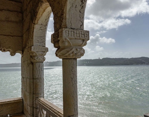 Uno dei punti di forza della Torre di Belém è la sua terrazza aperta in cima. C'è un'unica scala stretta e ripida che dà accesso a tutti i piani, compreso il tetto, ma può essere piuttosto affollata. Goditi la splendida vista della città dalla terrazza. C'è un sistema di semafori rosso-verde che controlla quando le persone possono salire o scendere. Mentre aspetti, esplora ogni piano salendo o scendendo.