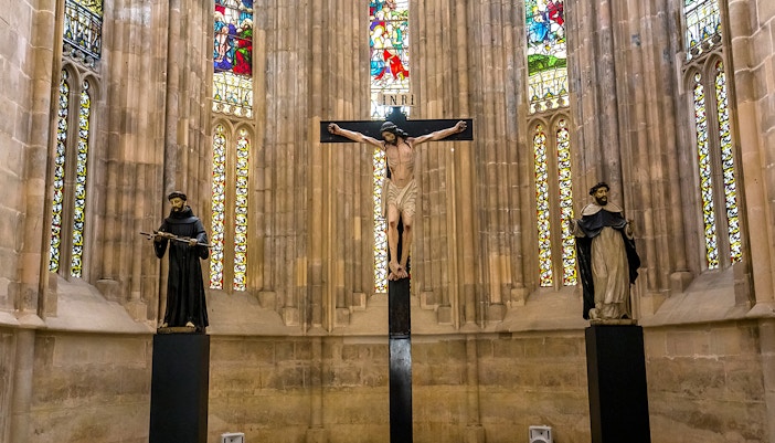 - Besøk i hovedkirken: Det er gratis å besøke hovedkirken, som har høye hvelvede tak og originale fargede glassvinduer. Men for virkelig å oppleve klosterets magi må man utforske de betalte delene.