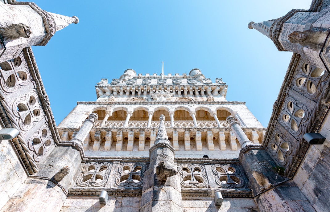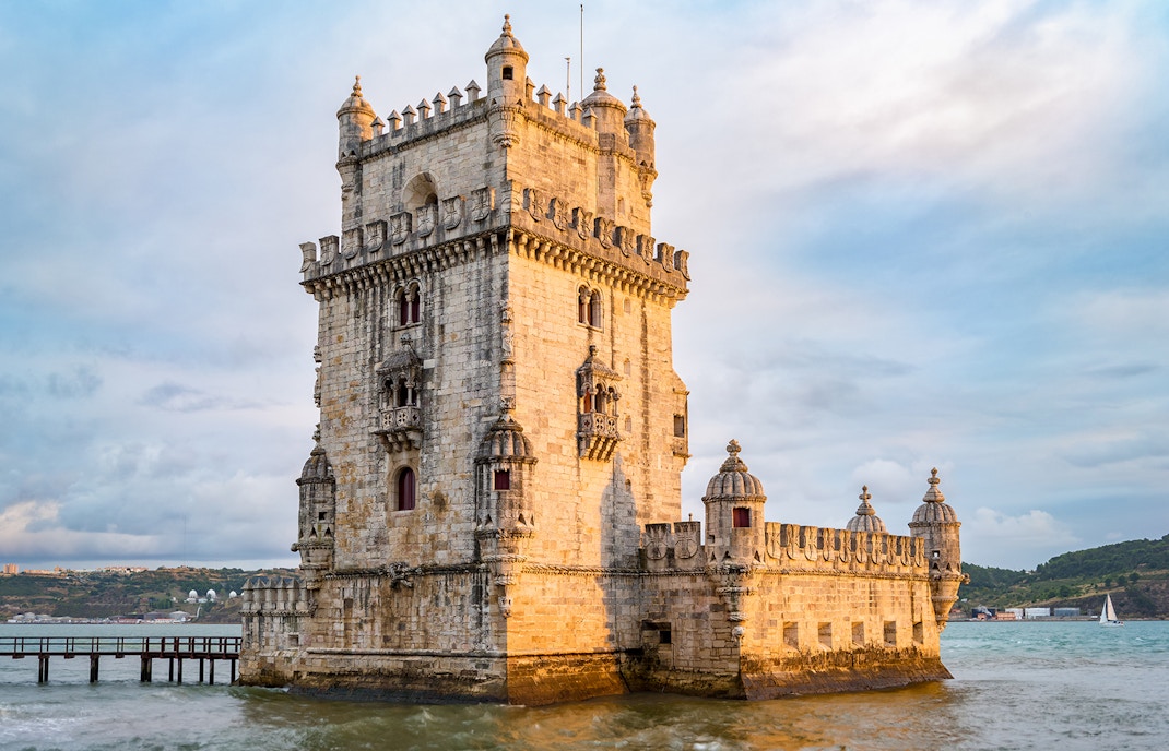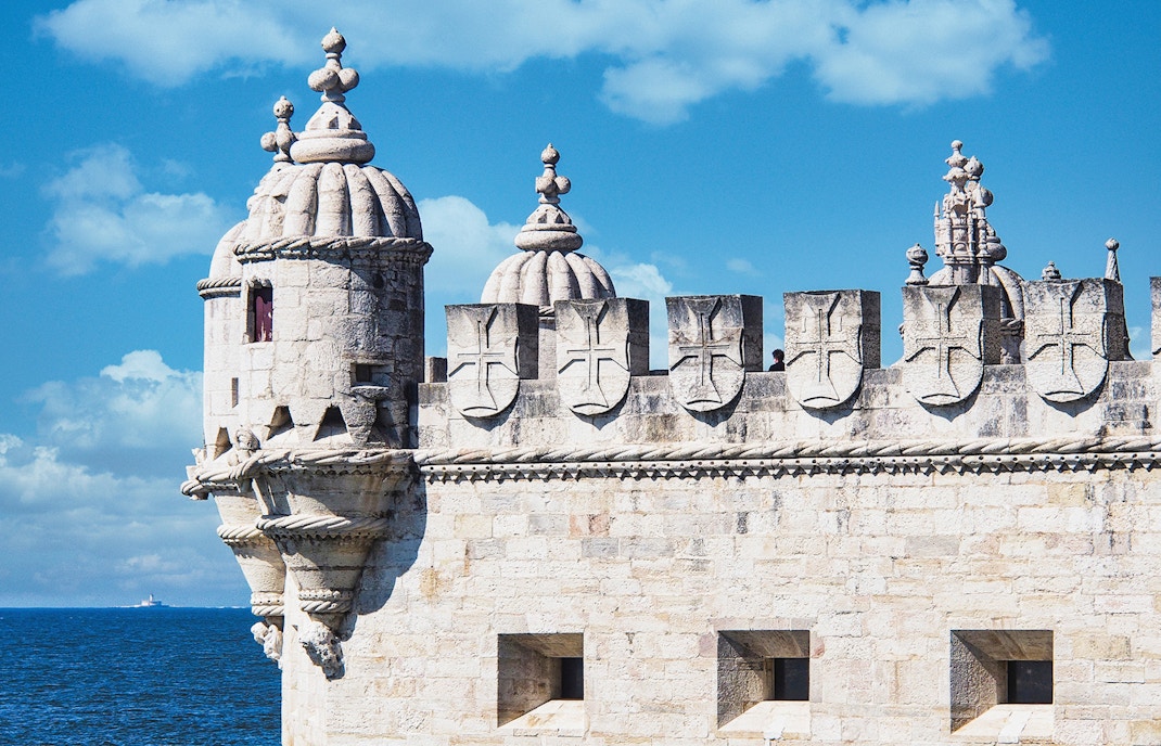 Durante o reinado do Rei João II, costumava haver uma linha de defesa no local exato em que se encontra a torre. Mais tarde, seu sucessor, o rei Manuel I, acreditava que construir uma torre permanente seria mais viável do que ter um navio na água. Foi assim que começou a construção da Torre de Belém. O navio tem vários canhões e essa estrutura foi substituída por uma fortificação de pedra no século XVI.